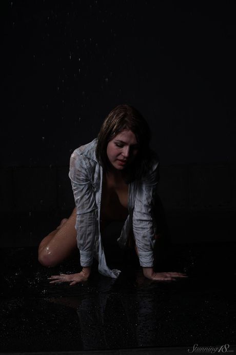 Pure teen Anna A gets soaking wet while posing nude in a latex dress