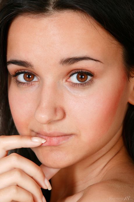 Russian cutie Emily removes her dress to show her big tits and hairy pussy