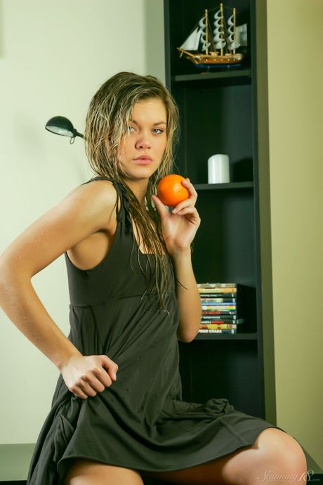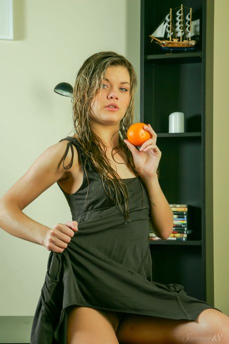 Skinny amateur teen babe with tiny tits stripping and teasing her pussy