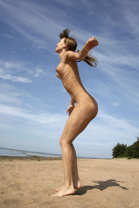 Skinny brunette Alina shows her adorable titties and poses nude on the beach