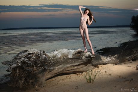 Skinny Russian model Nicole gets totally naked on a sandy beach