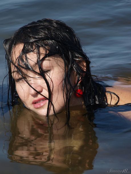 Solo girl Rusya removes her bikini to pose nude on a rock in the ocean