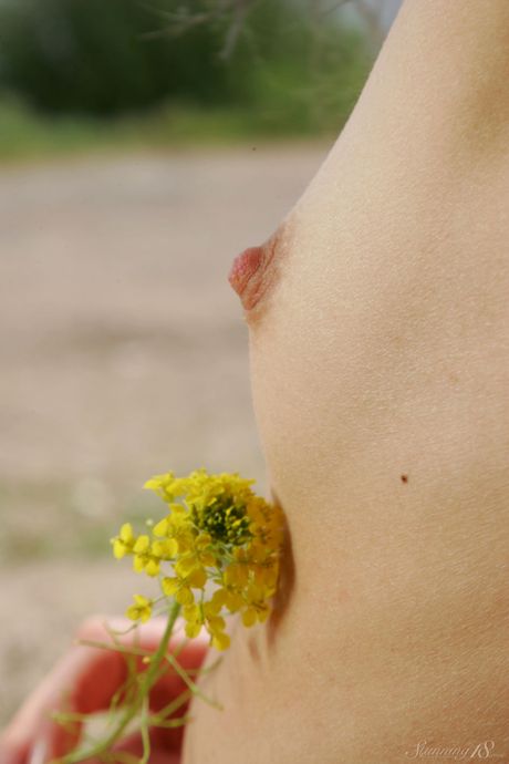 Svelte teen Anais highlights her naked pussy while on a balcony