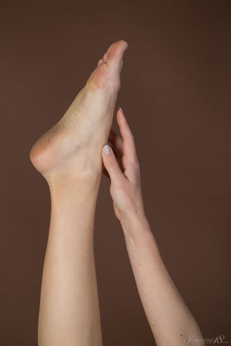 Svelte teen with small tits Irene poses naked in a solo shoot