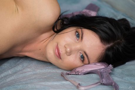 Teen model April removes her socks to get completely naked