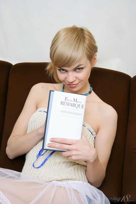 Tender teen Cindy B gets naked on a sofa in a confident fashion