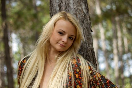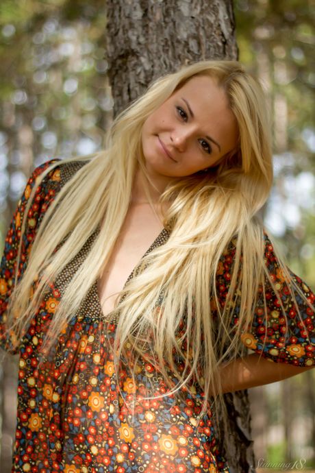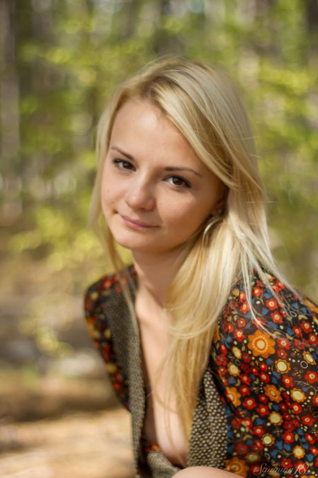 Thin teen Sallustia K strips naked in the backyard & shows her hot body