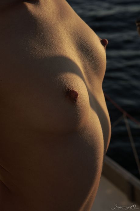 Ukrainian beautiful Roza A poses totally naked on a sailboat
