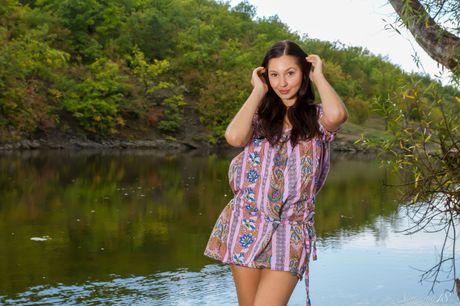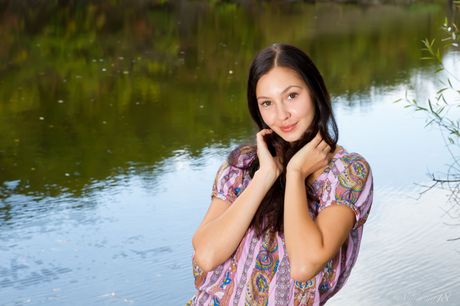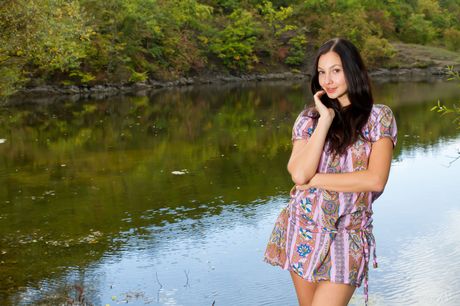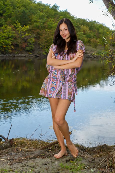 Ukrainian lady Gratidia N strips and poses nude in the water
