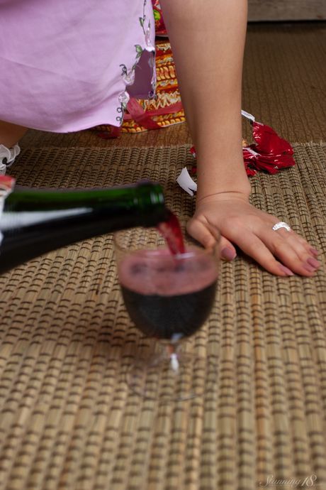 Young blonde Elka gets naked in front of a Christmas tree with self-assuredness