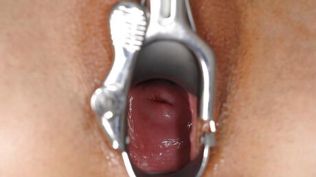 Stunning american brunette Blue Angel in stockings revealing small tits and toying her pussy in the bathroom