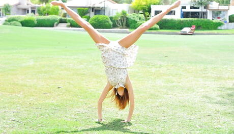 Stunning american dark hair young Presley Dawson in fancy skirt bares her butt and loves dildo outdoor