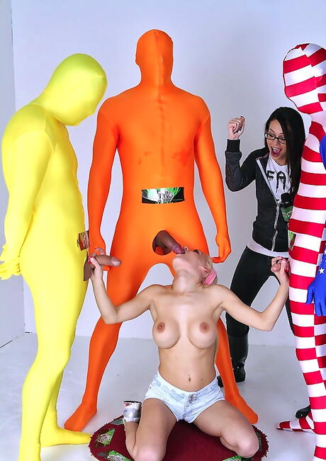 Stunning american Gigi Larios in fancy shorts blowing a lot of dicks