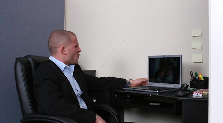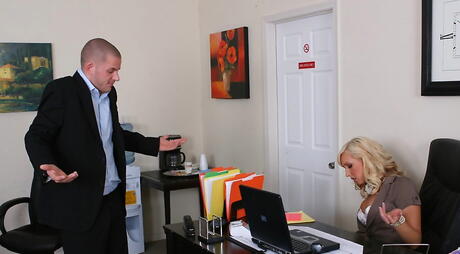 Stunning american Jessica Lynn fucked in her shaved pussy after wet blowjob in office