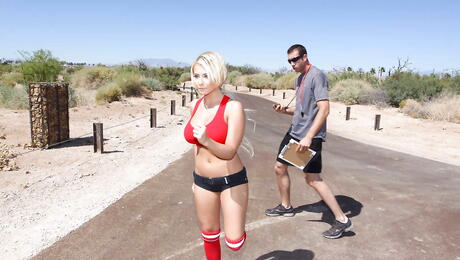 Stunning american Madison Ivy suck big dick and take it in cute pussy outdoor