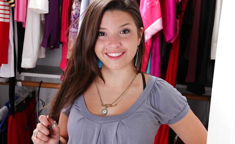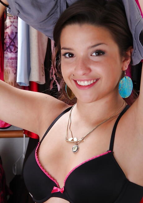 Stunning american teen Veronica Berry shows tiny tits and bald pussy