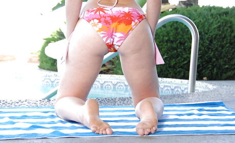 Stunning australian milf Shakira May unveiling tiny tits and sexy butt near the pool