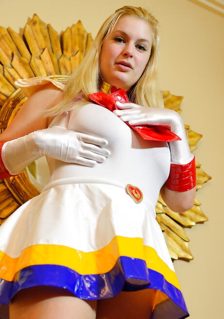 Stunning blonde amateur Danielle Delaunay shows big titties and play with sex toy in shower