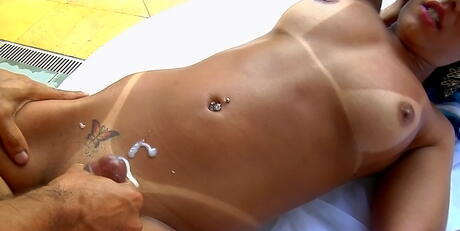 Stunning brazilian milf Nanda Paiva banged hard in her shaved pussy after hot cock suck at pool