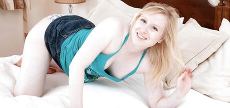 Stunning british blonde amateur Satine Spark in hot undies exhibiting big boobies and hairy pussy