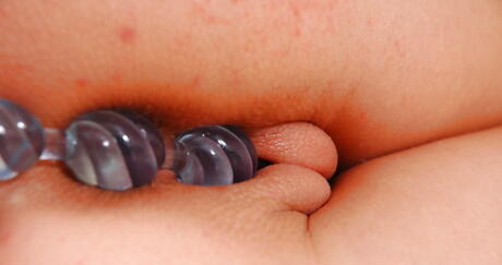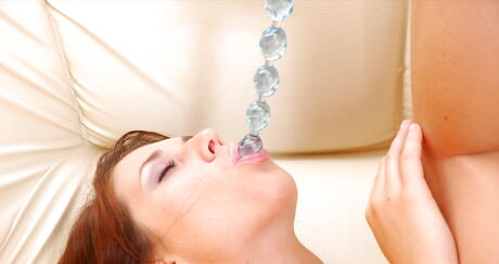 Stunning brunette babe Klarys in panties baring tiny tits and playing with dildo