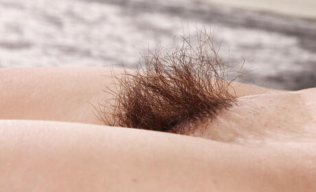 Stunning brunette milf Penelope Patterson in skirt exposes her butt and hairy pussy