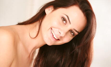 Stunning brunette youthful Camillia exhibiting small tits and masturbating