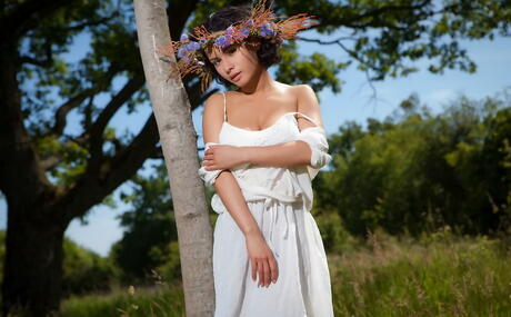 Stunning cutie Pammie Lee shows big boobies and hairy beaver outside