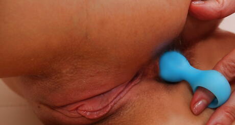 Stunning czech blonde milf Bianca Ferrero in underwear shows her ass and puts a toy in her twat