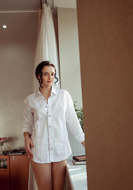 Stunning dark hair youthful Anatali in hot undies exposing big hooters and spreading her legs