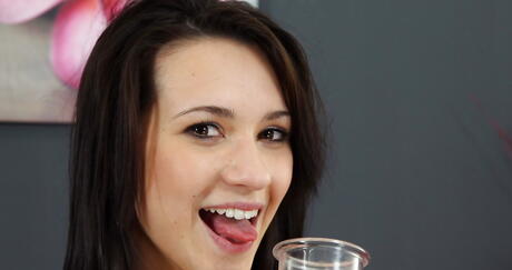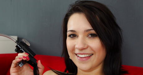 Stunning dark-haired babe Carrie Sass in sexy undies exhibits tiny tits and masturbates with sex toy