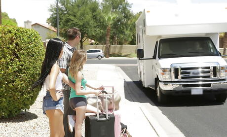 Stunning girls Angel Smalls and Katya Rodriguez enjoy amazing 3some action outside