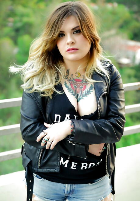 Stunning hottie Farrah Paws in hot lingerie denudes big tits and pussy outdoor