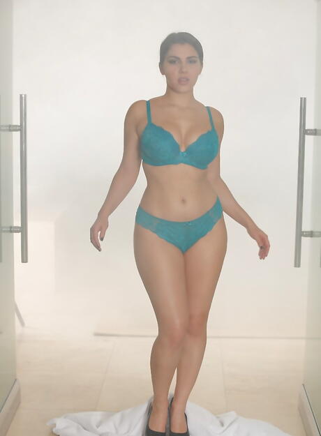 Stunning italian pornstar Valentina Nappi showing big boobs and spreading her legs in the bathroom