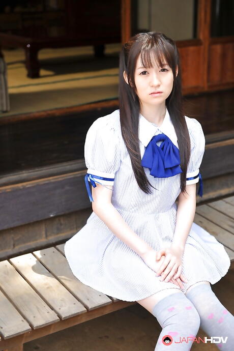 Stunning japanese dark-haired cutie Ai Uehara in skirt showing her beauty