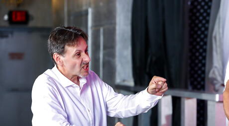 Stunning latina dark-haired Jamie Valentine in hot threesome sex scene