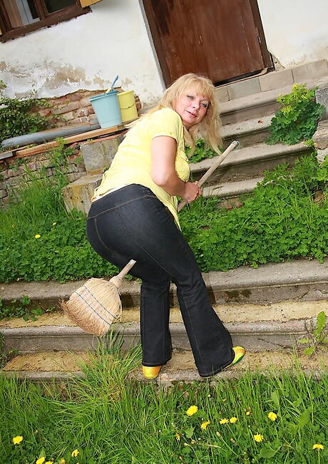 Stunning mature Rita in hot undies baring big boobs and toying outdoor
