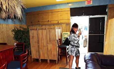 Stunning mature Samantha in fancy skirt exhibits big boobs and spreads her legs