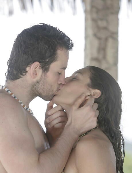 Stunning spanish milf Julia Roca in sexy bikini sucking hot rod and enjoys a cum blast in her mouth outdoor