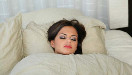 Stunning teen Angelika Black in undies shows big knockers and masturbates with sex toy