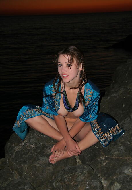 Stunning teen Firebird A baring big boobies and jerking off at beach