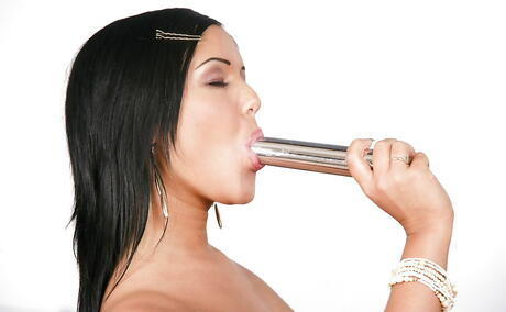 Sultry american babe Angelica Heart revealing her ass and dildoing outside