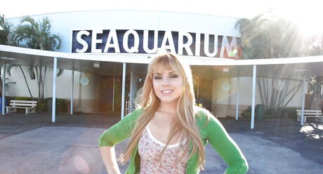 Sultry american bombshell Lexi Belle in sexy shorts banged after wet blowjob outdoor