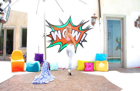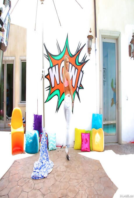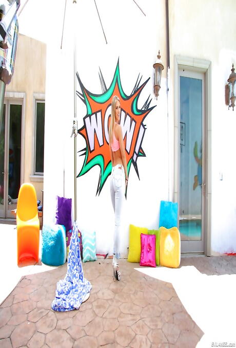 Sultry american cutie Candice Dare exhibiting her ass outdoor