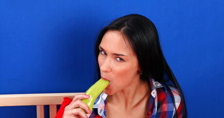 Sultry american cutie Victoria Sweet bares her butt and toys her cunt