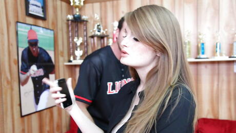 Sultry american Faye Reagan fucked in shaved pussy after sucking dick in office