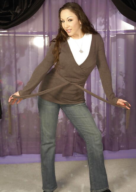 Sultry american Jewell Marceau in sexy jeans showing big boobies and sexy ass
