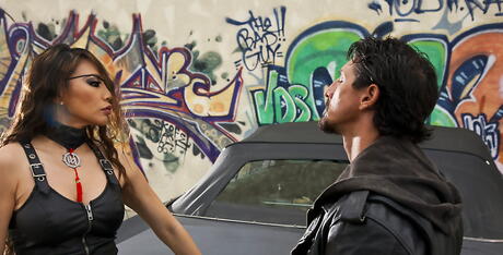Sultry american milf Miko Lee drilled by cock outside