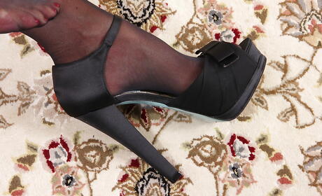 Sultry american older Rae Hart in hot stockings denudes big tits and shaved pussy