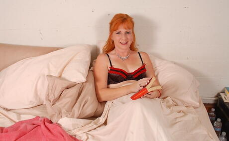 Sultry american redhead mature Sasha Brand in hot lingerie shows her butt and sissy